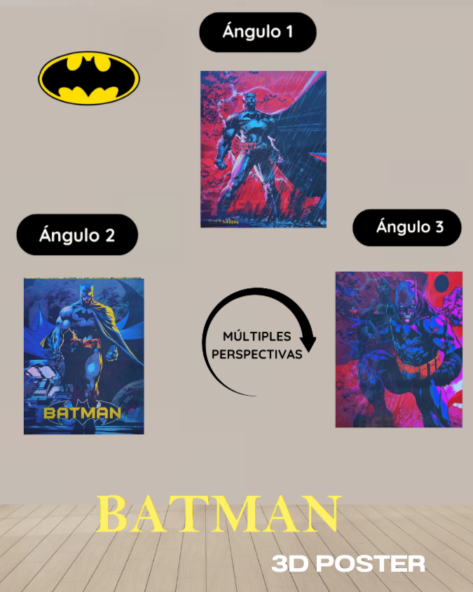 El 3D POSTER - BATMAN: tiene 3 imágenes de EL CABALLERO OSCURO de tres de sus mejores momentos.