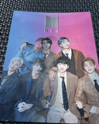 Nuestros pósters cambian mientras te mueves, revelando distintas escenas de BTS con un sorprendente efecto 3D. Cada ángulo muestra un momento diferente, creando una experiencia visual única para ARMYs. Más que un póster, es una pieza que transforma cualquier espacio con el estilo y la presencia de BTS.