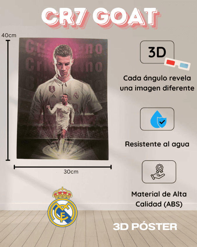 Con cada movimiento, la imagen cambia, revelando un efecto 3D dinámico que cobra vida frente a tus ojos del más grande del fútbol CR7!