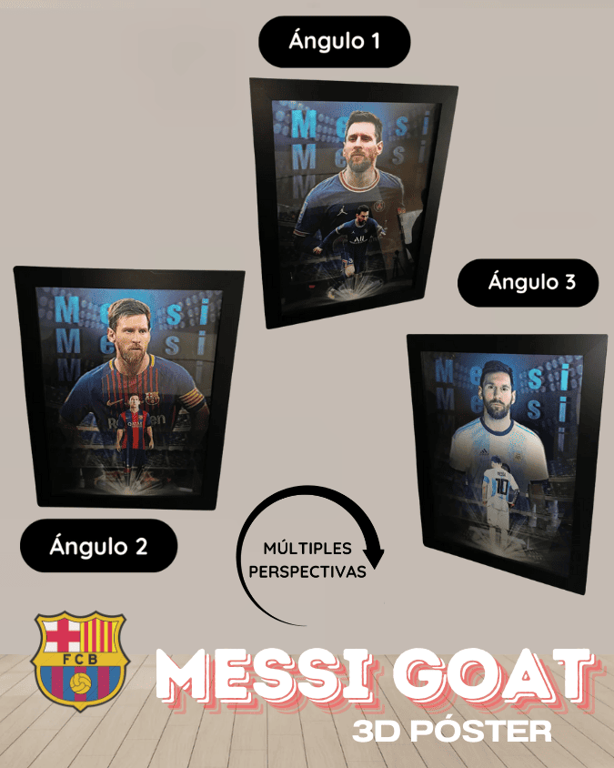 El 3D POSTER- MESSI GOAT: tiene 3 imágenes de MESSI, cada ángulo muestra una imagen diferente de tres de sus mejores equipos!